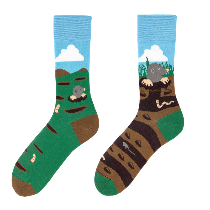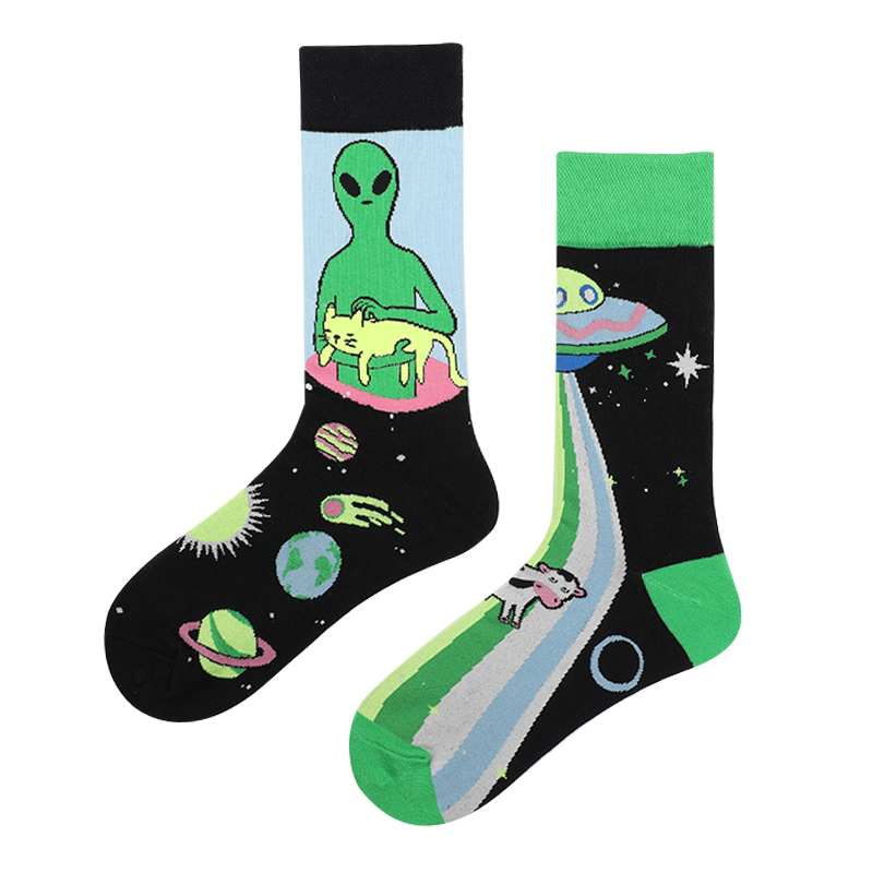 Asymmetrical Color Retro Personality Male And Female Couple Mid-length Cotton Socks