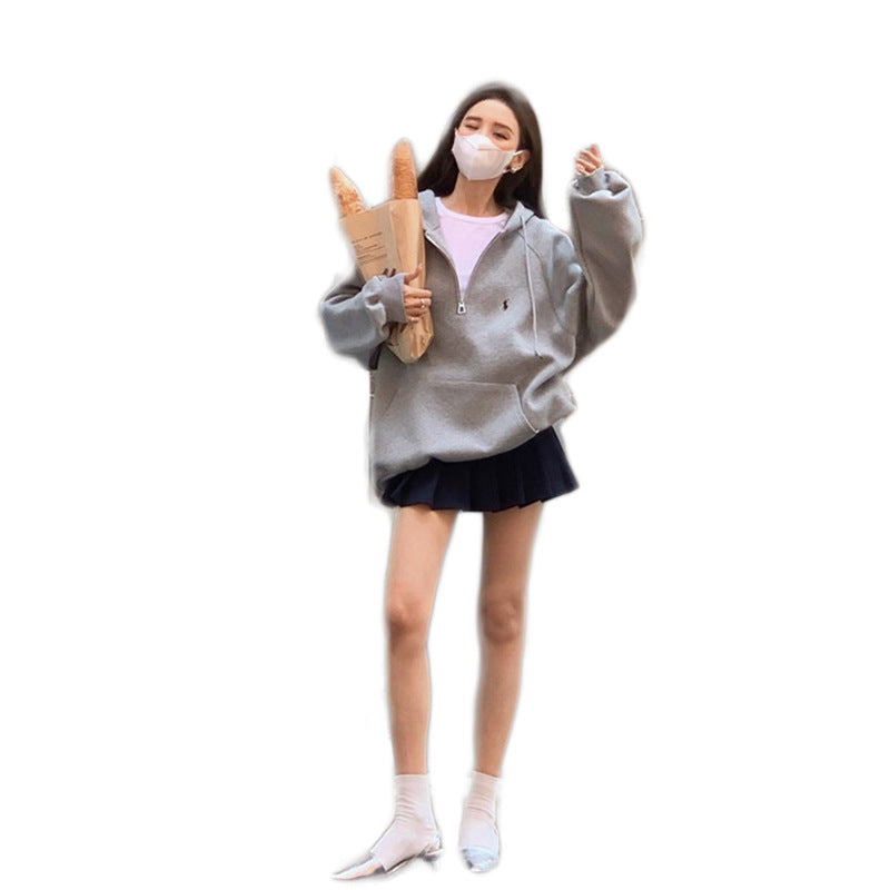 Long Sleeve Fleece Pullover Women's Zipper Half Cardigan Hooded Top