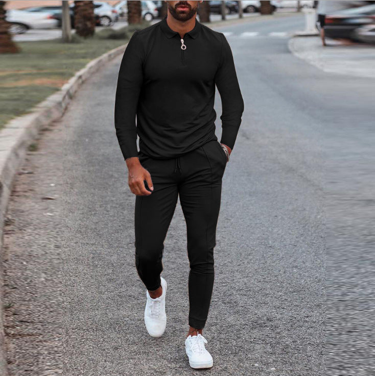 Men's casual suit lapel solid color long sleeve two-piece suit