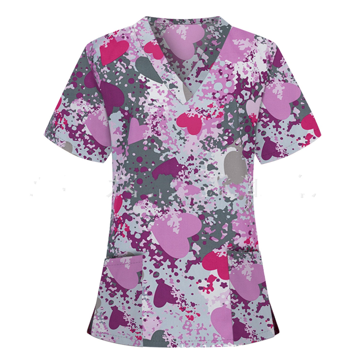 Pocket v-Neck Short-Sleeved t-Shirt Nurse Uniform
