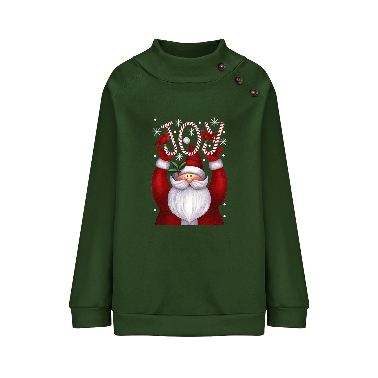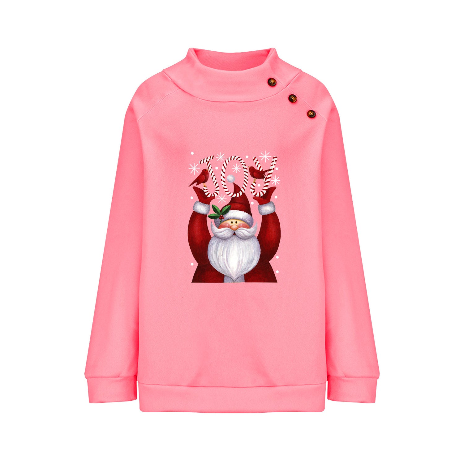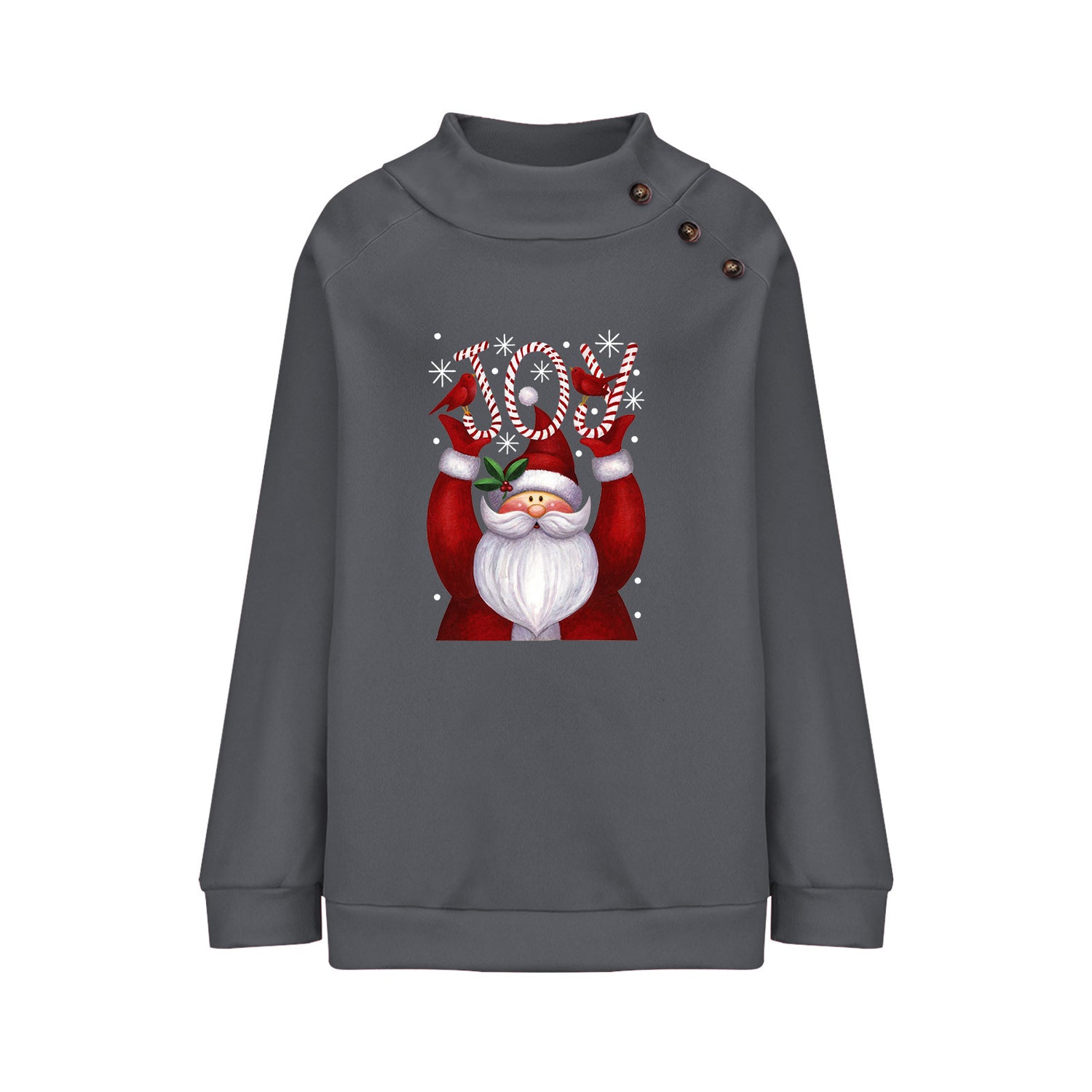 Printed Button Christmas Loose Long Sleeve Sweatershirt Women