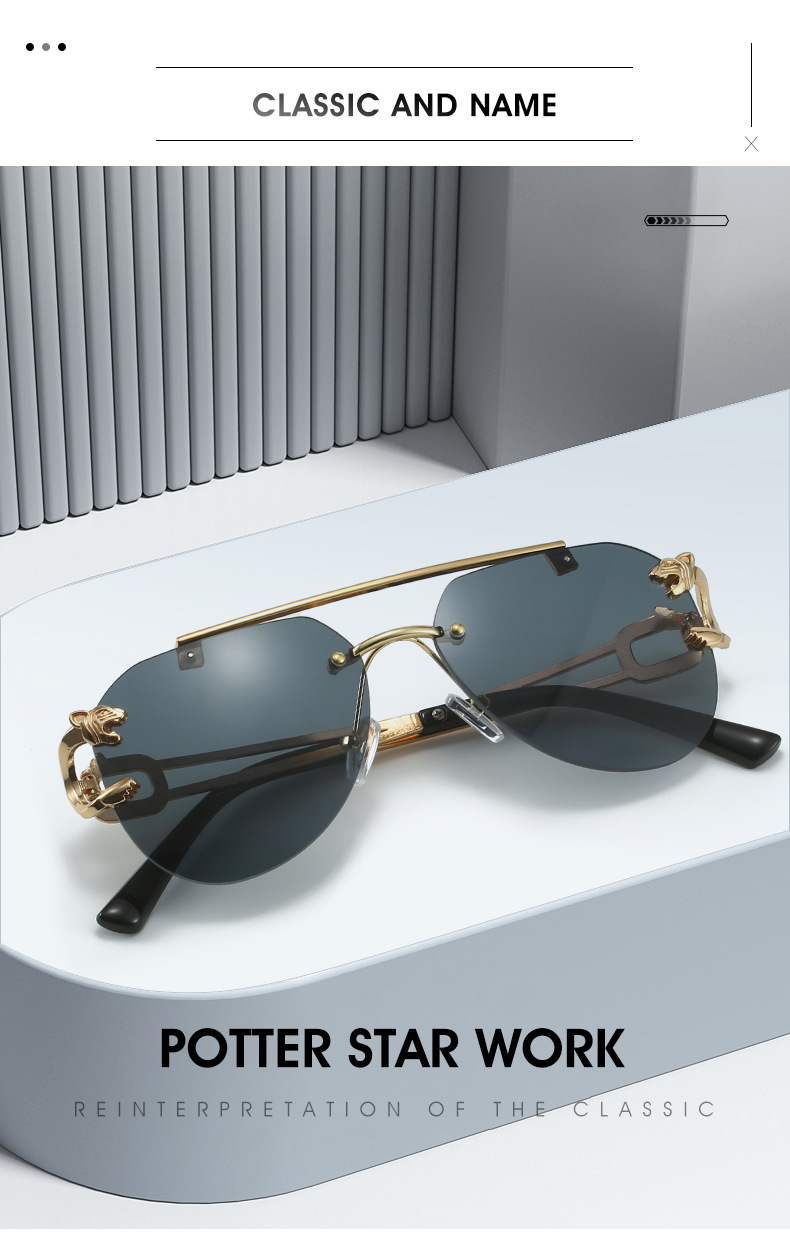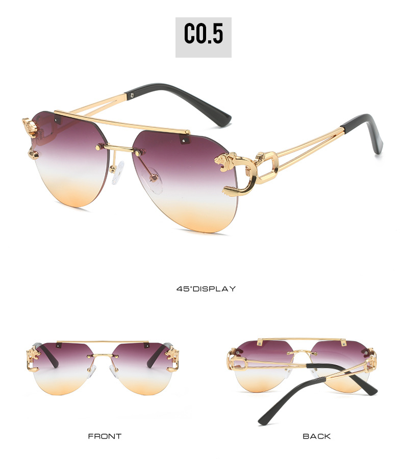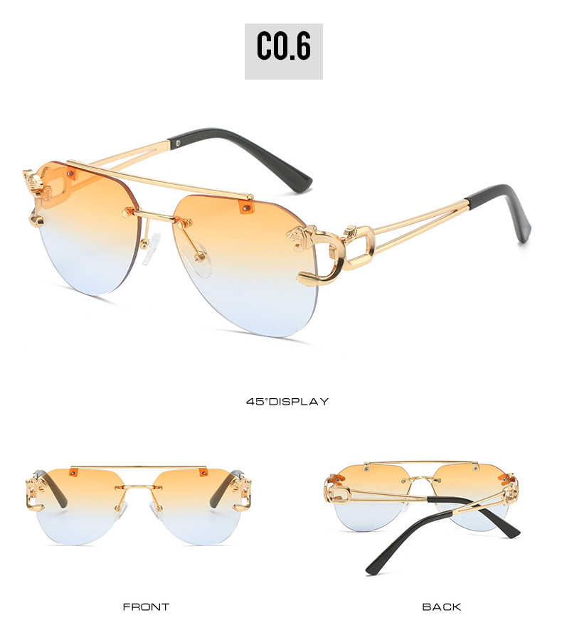 Rimless Leopard Head Sunglasses Women Men's Double Beam Personality