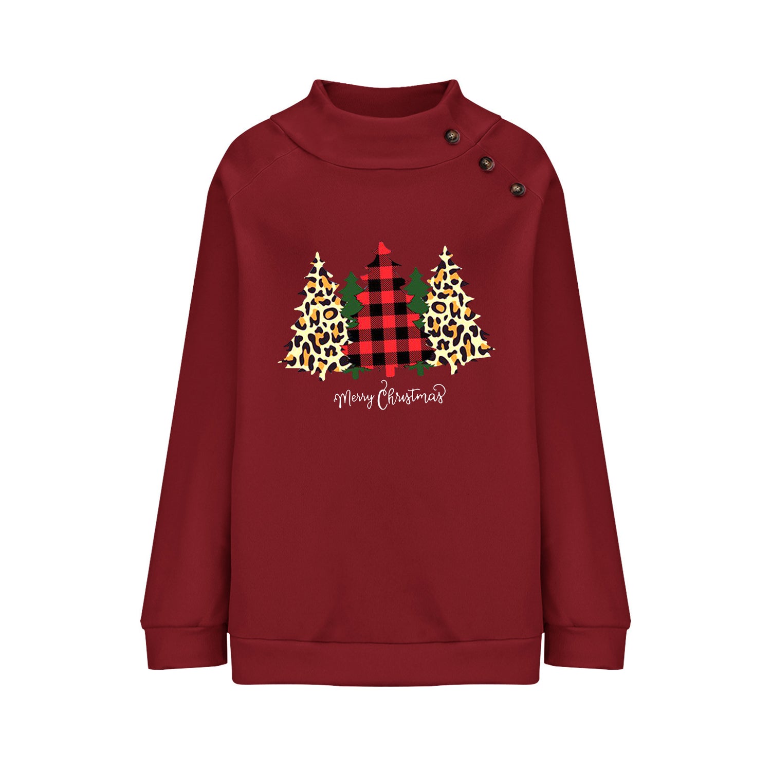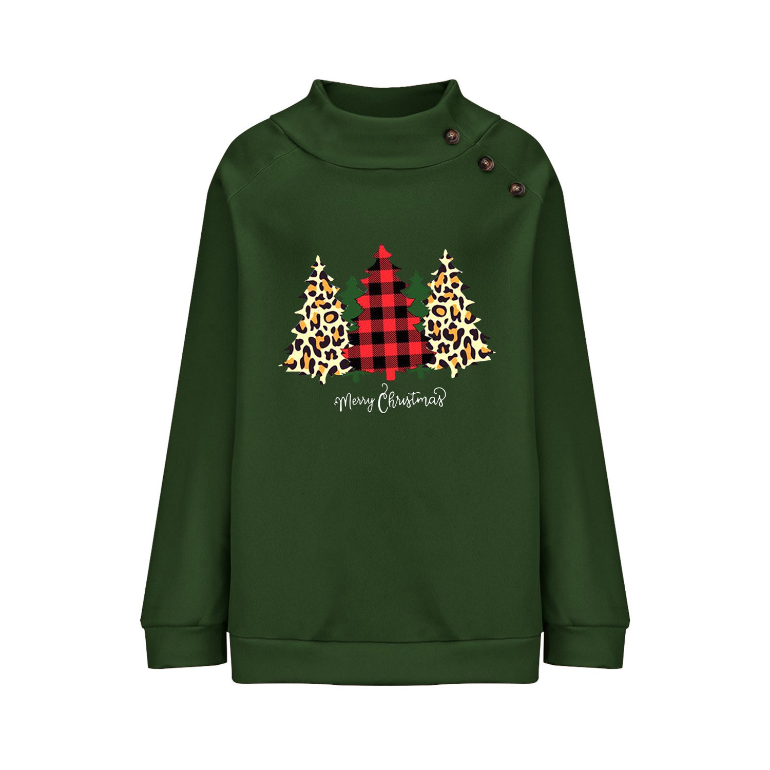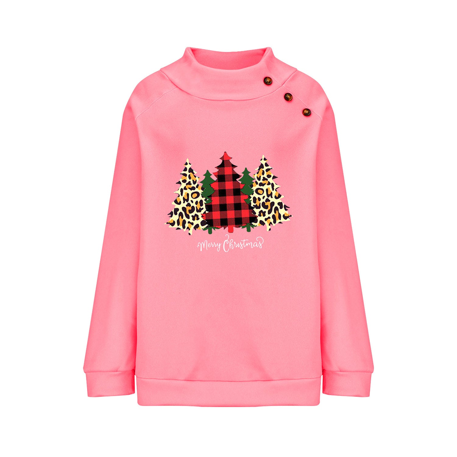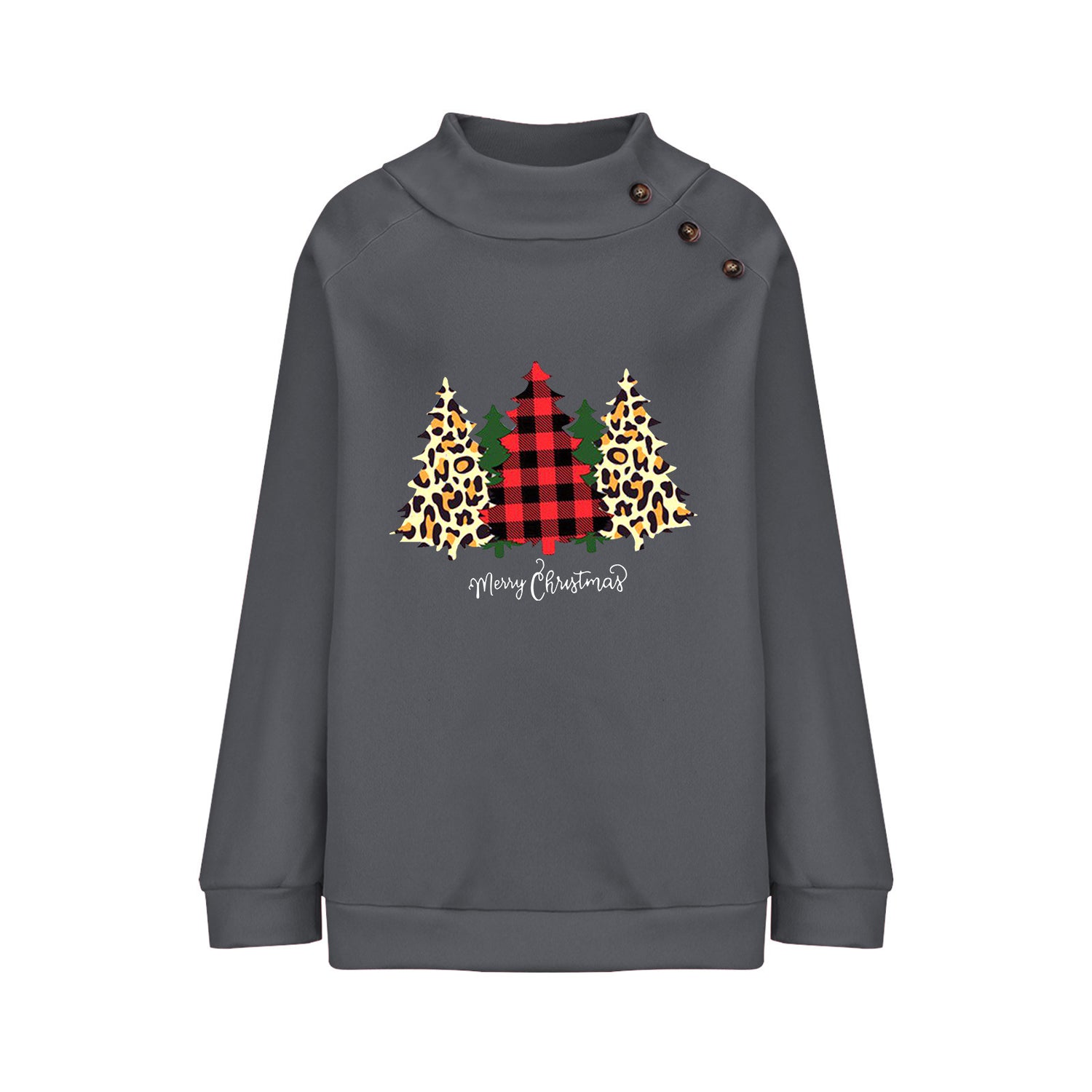 Round Neck Button Loose Long Sleeve Sweatershirt Women