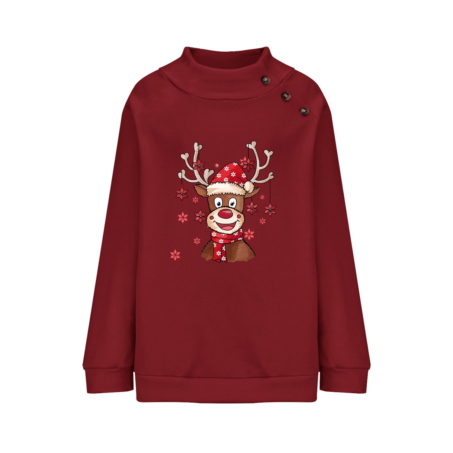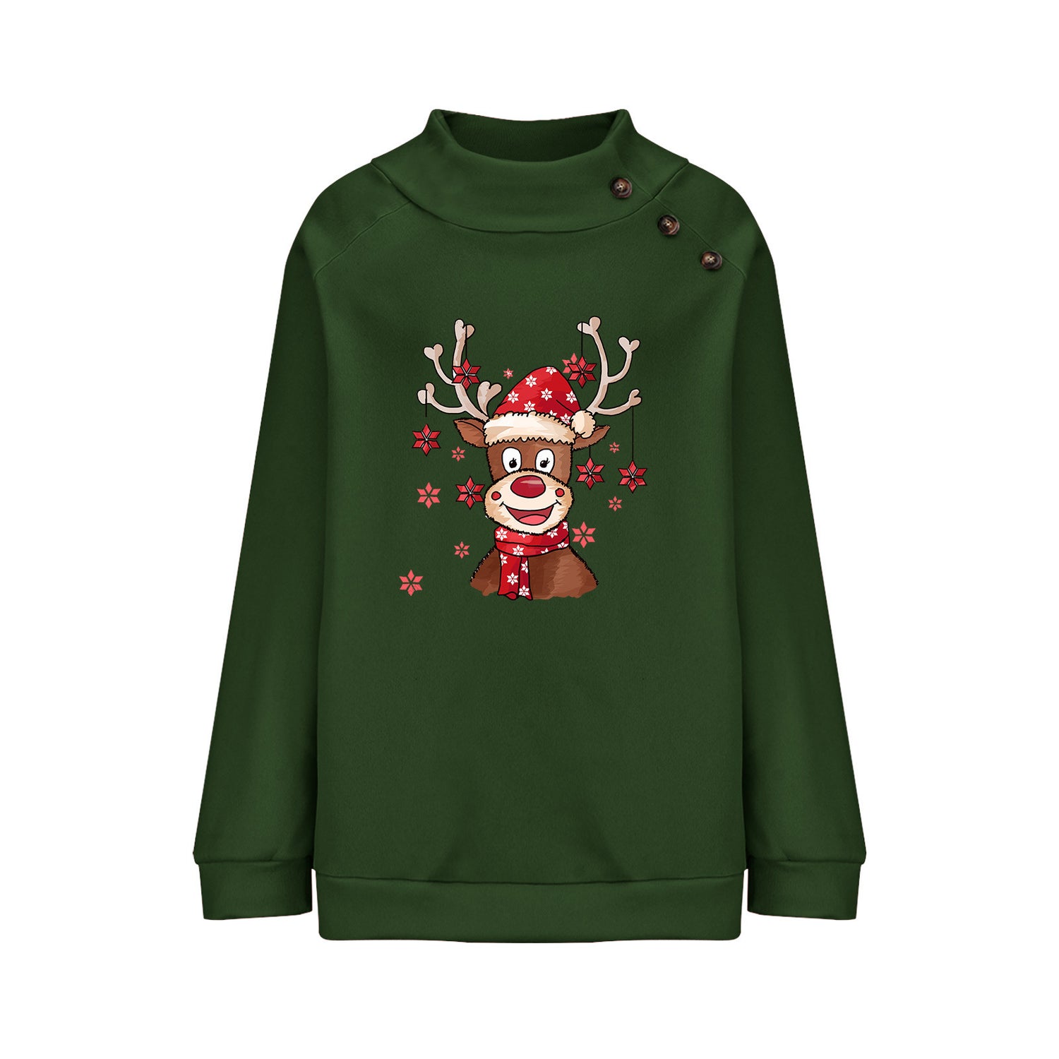 Turtleneck Buttons Christmas Deer Loose Sweater Female