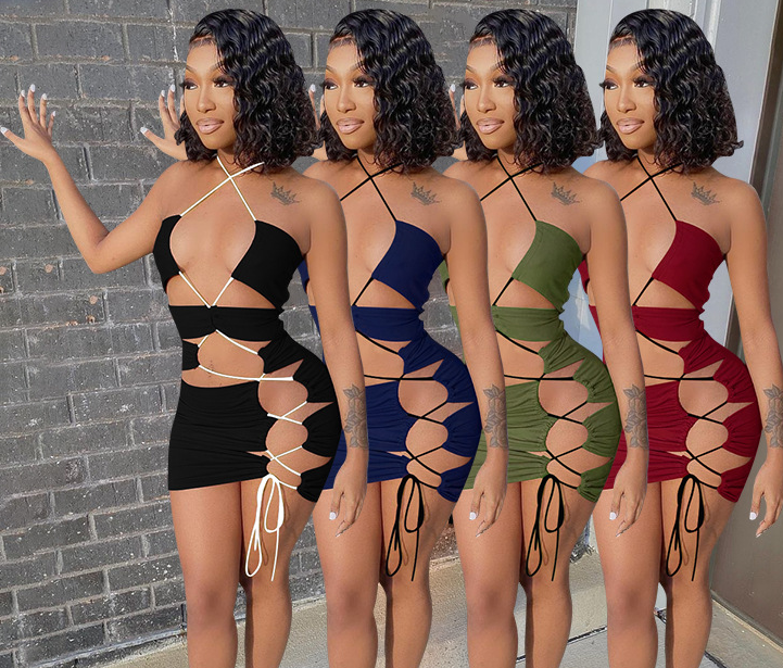 Women's New Products Irregular Drawstring Foreign Trade Women's Dresses